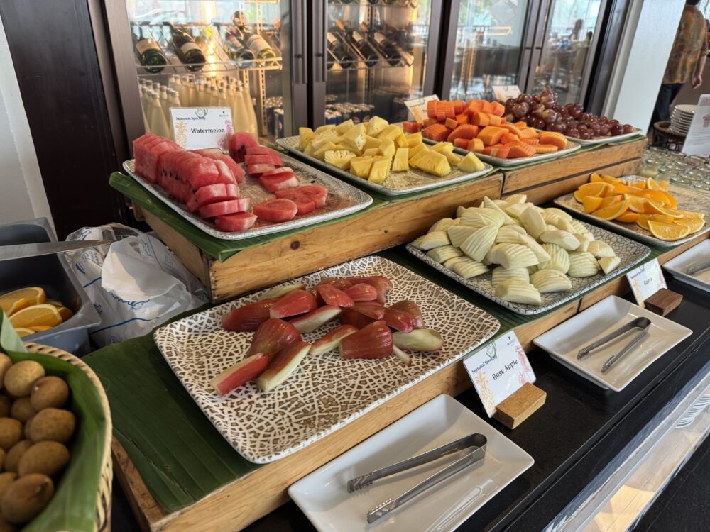 フルーツやデザートも充実していて、特にトロピカルフルーツの新鮮さはさすがタイという感じ。子ども達もフルーツやパンケーキに夢中でした。