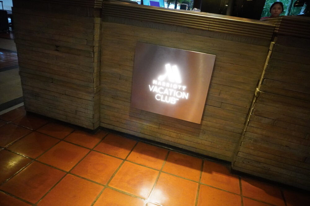 チェックインカウンターには「Marriott Vacation Club」のロゴ。JWマリオットのロビーでチェックインの手続きを済ませた後は、バギーでお部屋まで送迎してもらえます。