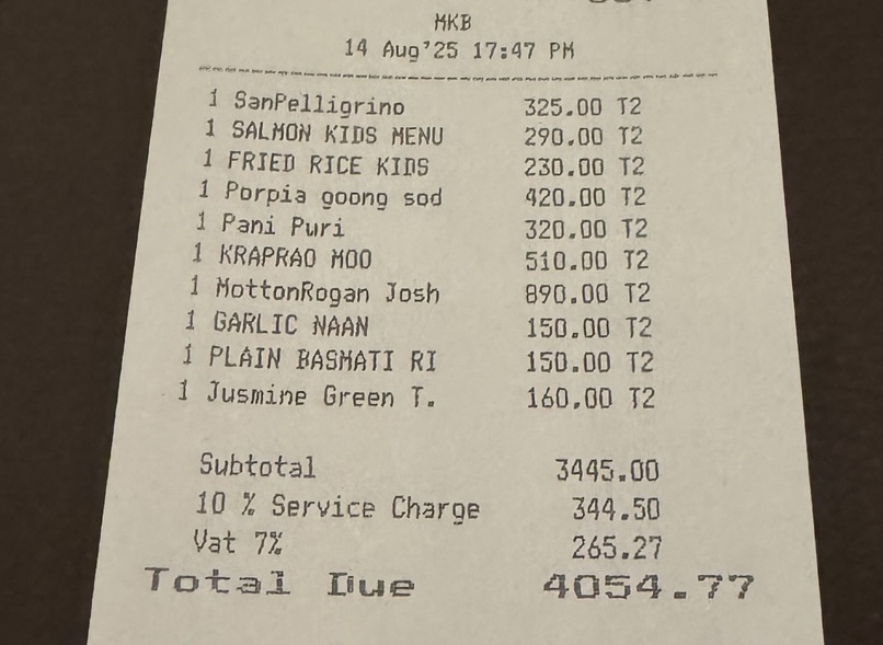 2日目の朝食はSiam Deliへ。営業時間は7:00〜22:00で、グルメサンドイッチや焼きたてのペストリー、自家製のお菓子などが楽しめるデリレストランです。メイン、ペストリー、フルーツ、ジュース、コーヒーのセットを2つ注文して合計788バーツ(約3,200円)でした。