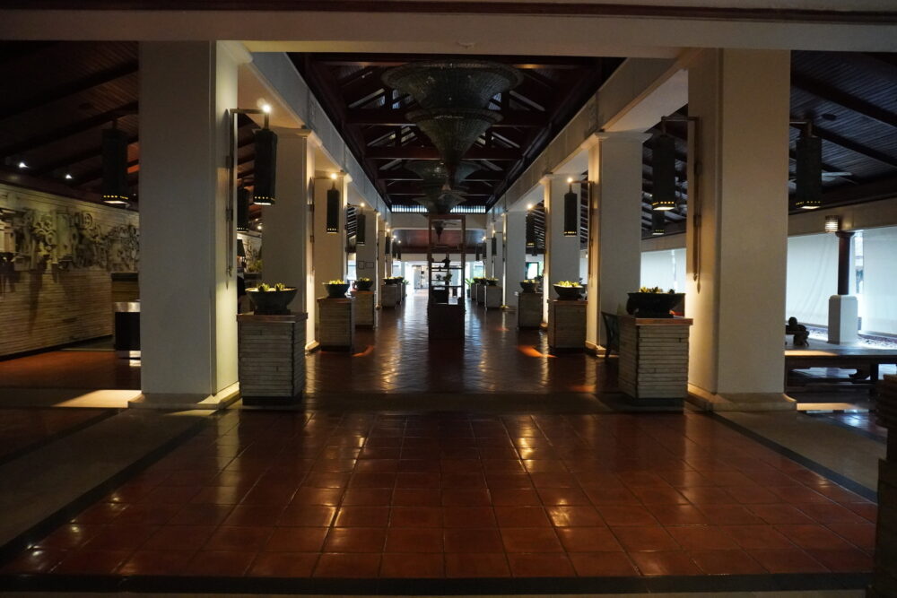 マリオット・プーケット・ビーチクラブのチェックインは、隣接するJWマリオット・プーケット・リゾート&スパのロビーで行います。最初に到着したとき、JWマリオットの立派なエントランスに「間違えて来てしまったのでは?」と一瞬不安になりましたが、ここで合っていました。