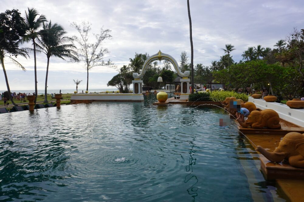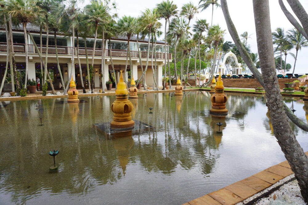 リゾート内にはタイ様式の美しい池や噴水が点在しています。雨の日でも趣があって良い雰囲気です。