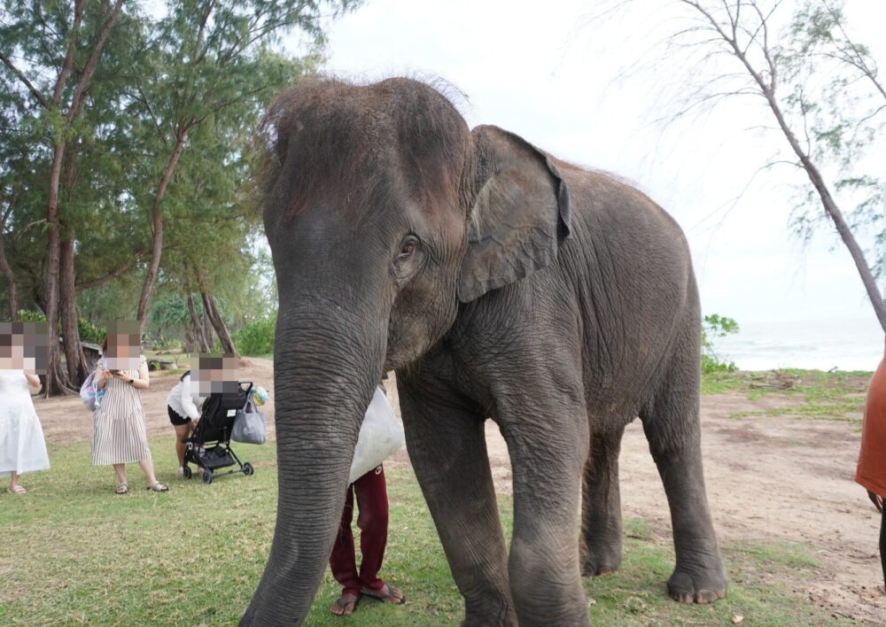ビーチには象がいて、有料で餌を与えることができました。